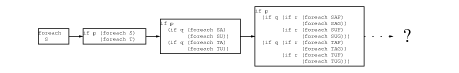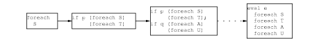 psForeach loops over a statement; eval recursively switches over several statements. The leftmost box