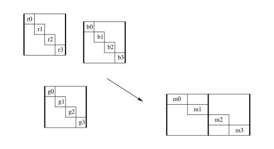 A concrete result of this thesis is a system that can produce residual programs like Figures rgbm1 and rgbm2 from a general program that can handle any channel organization, bits per pixel, combination procedure, etc. Such a program appears in Figure rgbm.